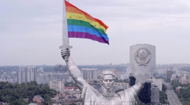 LGBTIQ+ activists in the Ukraine have displayed a defiant show of Pride this month, flying the rainbow flag atop the nation’s most famous monument.