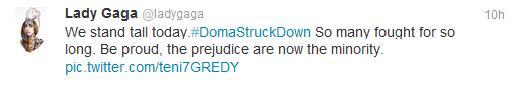 With Americans kissing goodbye to both DoMA and Prop 8, celebrities have jumped all over Twitter to express their support of marriage equality.