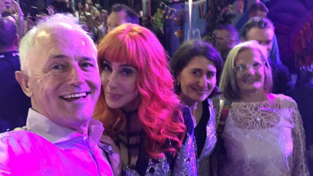 The Prime Minister took the photo with the iconic singer at Saturday’s 40th Sydney Gay and Lesbian Mardi Gras parade celebrations.