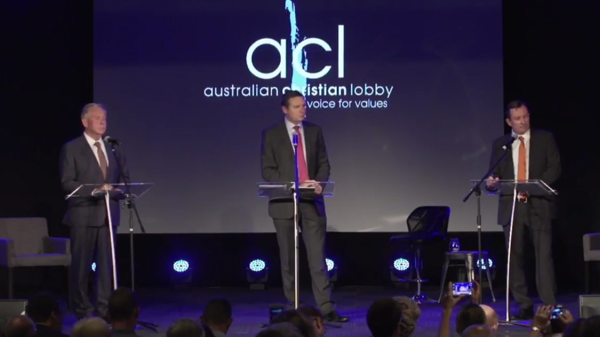 Premier Colin Barnett and opposition leader Mark McGowan made their election pitches to Christian voters at a forum facilitated by the Australian Christian Lobby.