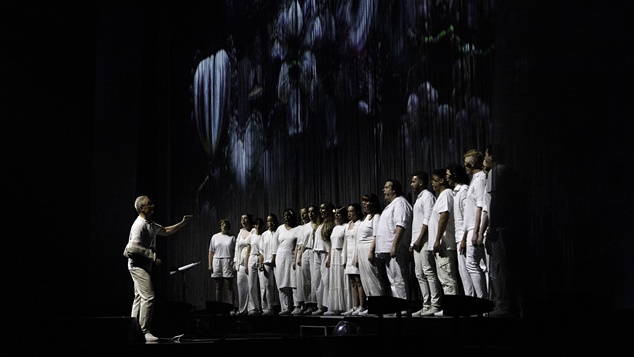 The show begins with local choir Voices performing several numbers, the choir members dressed in white and wearing a variety of golden masks. They reappeared throughout the show alongside the Icelandic singer.