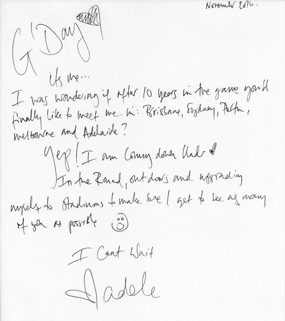 Adele has announced her first event Australian tour including dates in Perth, Sydney, Melbourne, Brisbane and Adelaide.
