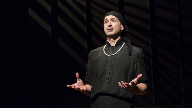 Brendan Hanson appears on stage as von Mahsldorf, dressed in black, hair hidden under a black head scarf, clunky orthopedic boots and a face free of makeup. The only flourish of femininity the antiquarian added to her somber attire was a string of white pearls.