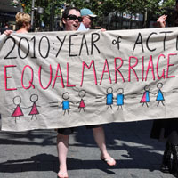The protests came just two days after the Senate Legal and Constitutional Affairs Committee recommended rejecting the Marriage Equality Amendment Bill 2009, which would give same-sex couples equal marriage rights.