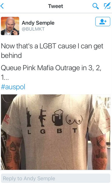 Aside from the LGBTIQ community, Semple also posted comments describing vegans as “miserable people” and said Muslim immigrants needs to realise that they were in Australian to assimilate and not colonise. Semple had also made comments his displeasure at seeing women with armpit hair and criticism of women Muslim women who wore burkas.
