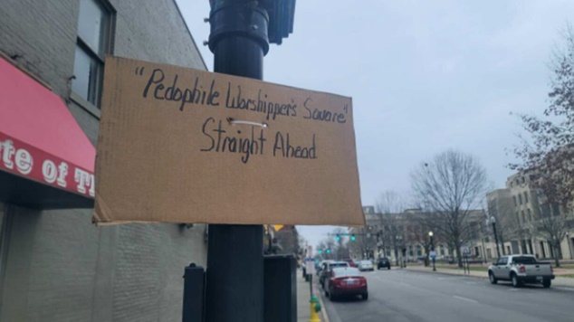 Local news station LEX18 reported that multiple signs had been installed near the rainbow crosswalk describing the area as “Pedophile Workshipper’s Square”.