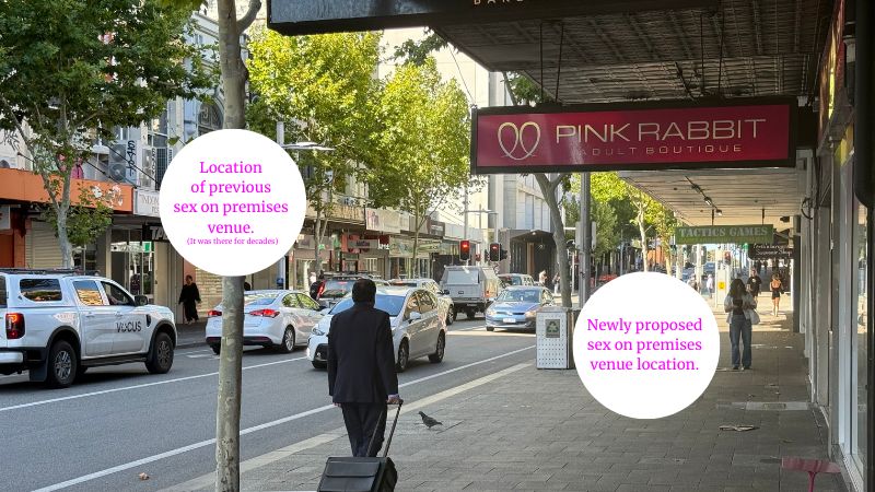 The website reported that an application has been lodged to open a new sex on premises (SOP) venue on Barrack Street in the city centre. The new venue will be accessed via the Pink Rabbit Adult Boutique or via a rear laneway.