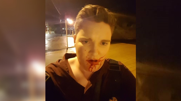 The 20-year old said the man then repeatedly punched him in the face. He fell backwards and hit his head on the road. When he came to, he had blood pouring from his mouth.