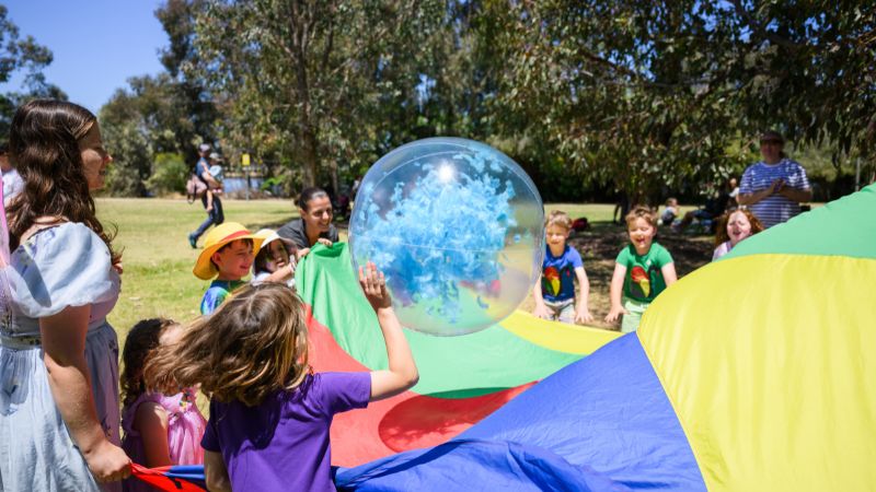 Themed around ‘Neverland: Pirates and Fairies’, the event brought together families from across Western Australia for a morning filled with laughter, music, and connection. Children arrived dressed as fairies and pirates, joining in games, dancing, face painting, and story time under the trees beside the river.