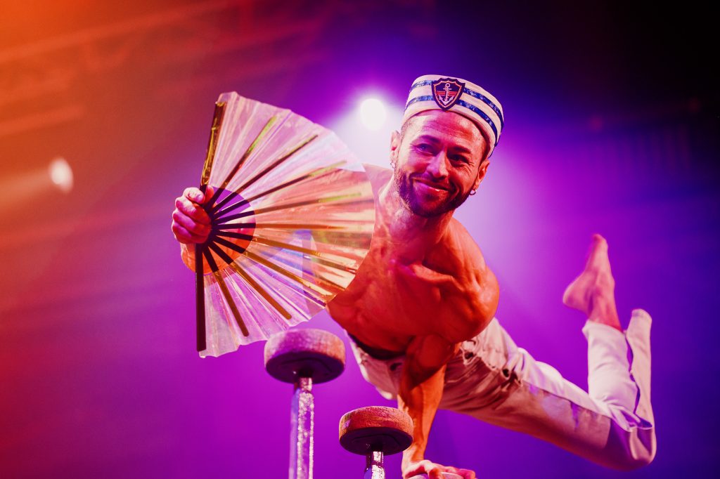 Hand-balancing wonder Danik Abishev opens the show with a cheeky, death-defying performance, and fire-breathing sensation Jacqueline Furey wowed with her flaming talent.