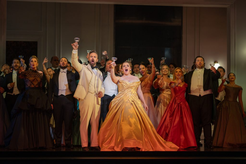 A highlight of the production is the opening of the second half, which sees the former lovers now on the outer as they attend a wild party hosted by their friend Flora. It is debaucherously exuberant and surprisingly a little gender‑queer. As Violetta’s health deteriorates, the question becomes whether true love can find a way before it is too late.