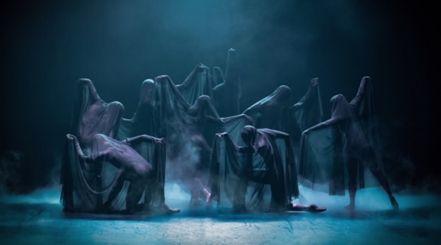 The introduction features a veiled cast of spectres, moving amongst the fog, jilted and forever passing in the night. Each movement is precise, clean, and ethereal, as the light fabric clings to the silhouettes of psychopomp figures as they traverse the underworld. The piece then slips into a story of wondering souls, forever lost and searching for their loved ones. Statuesque movements portray the skill and strength of clear ballet techniques – and at times envision the evolution of man, or more simply, the arc tales of Heroes and Heroines.