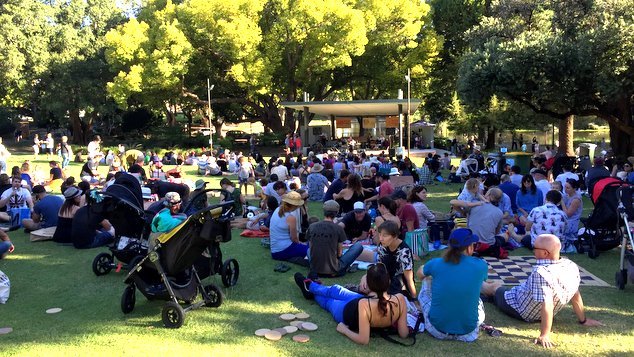 The free concert in Hyde Park saw performances from many local musicians including old favorites like Turntyle, Errol H Trout and The Triffids alongside newer artists including local band Verge Collection.