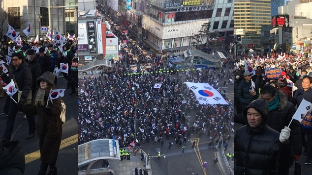 Image: hundreds of thousands of protesters took to the streets of Seoul in February calling for President Park Geun-hye to be removed from office.