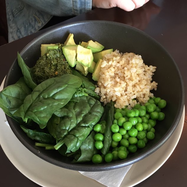 We sampled a breakfast bowl that was packed with goodness, a roast vegetable salad, and a scrumptious chicken and avocado burger.