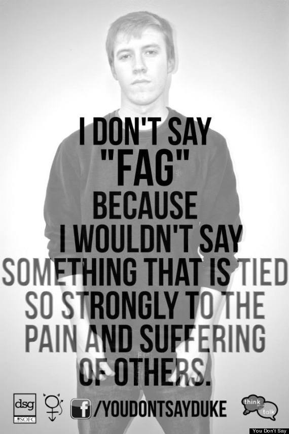 The ‘You Don’t Say’ campaign challenges students to consider the implications of using terms like ‘pussy’, ‘fag’, ‘man up’, ‘no homo’, or using the word ‘gay’ to denote something stupid or inconvenient.