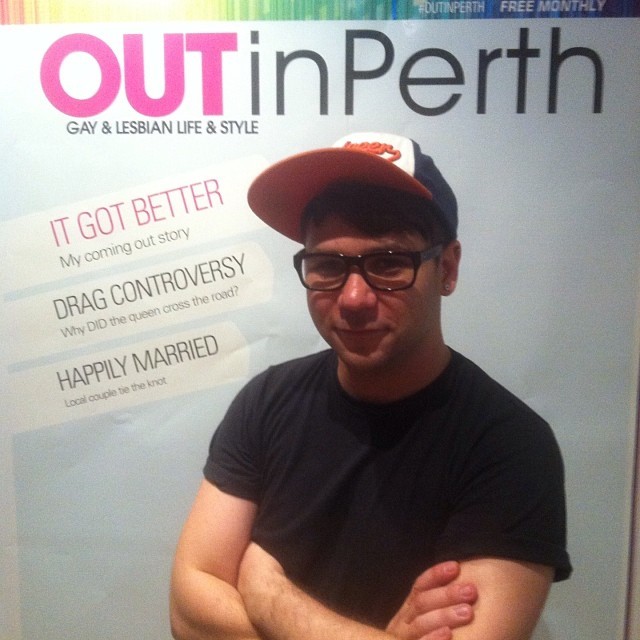 OUTinPerth’s Business Development Manager Ryan Boldison demonstrates how to pose for a cover, if you think you’d look better come and say hi to us at Fairday!