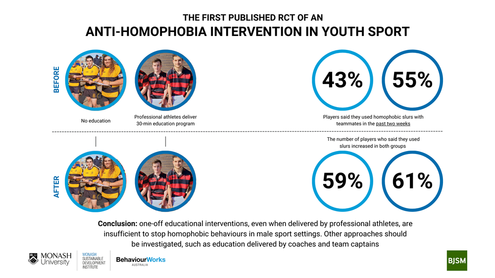 The study measured the frequency of homophobic language used by the rugby players before and after the education was delivered. The behaviour on teams that received the education was then compared to the behaviour of teams that did not receive the education.